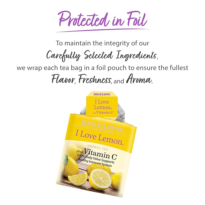 - Citrus Delight: 120 tea bags of Bigelow I Love Lemon with Vitamin C Herbal Tea, an invigorating lemony tea. combined with antioxidant Vitamin C that delivers daily value and supports overall healthy immune system