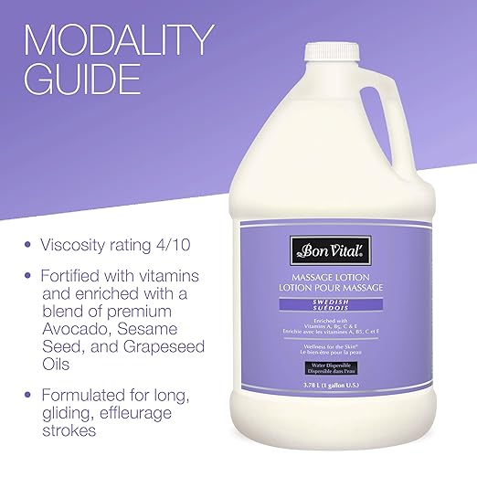 Bon Vital' Swedish Massage Lotion for Skin Tone Improvement, Dry Skin Repair, Increased Circulation, Great for Swedish and Sports Massages, 1 Gal, Label may Vary