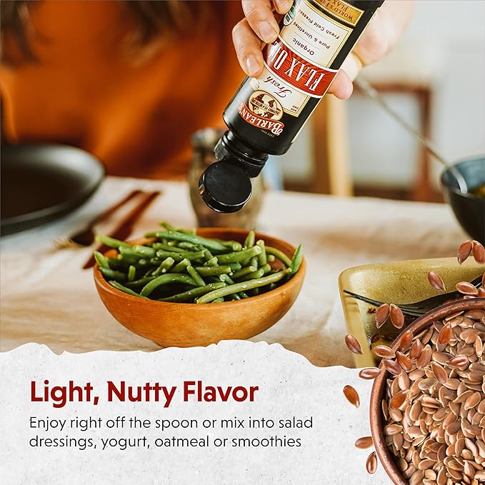 - PURE, ORGANIC AND UNREFINED: Barlean's organic flax oil is cold pressed without the use of heat or solvents. Each drop is protected from damaging heat and light from seed to bottle, offering a potent and healthy balance of Omegas 3, 6, and 9 and a pleasant and mild nutty flavor