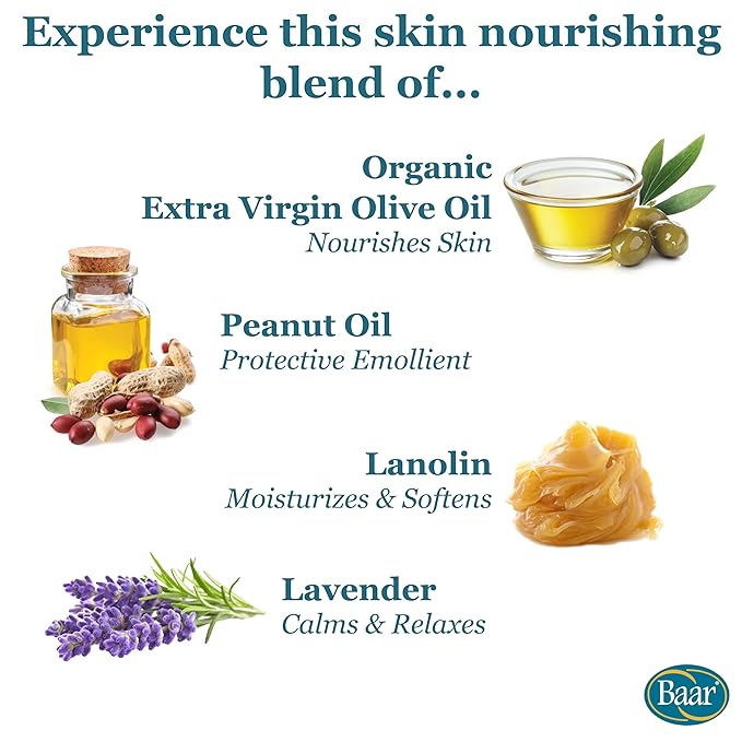 - Peanut Oil, Organic Olive Oil, Lanolin, Lavender Essential Oil