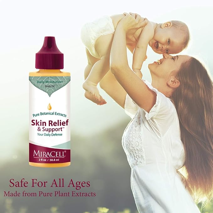 Miracell Skin Relief & Support Oil – Natural Face & Body Moisturizer with Apricot, Jojoba, and Vitamin E – Fast-Absorbing Hydration for Dry, Sensitive, or Rough Skin – 2 oz