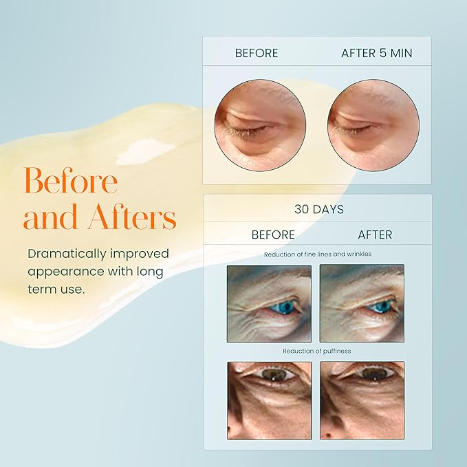 - ✨ Brightens & Firms – Instantly smooths crow’s feet, de-puffs under-eye bags, and promotes long-term skin renewal dramatically improved appearance.