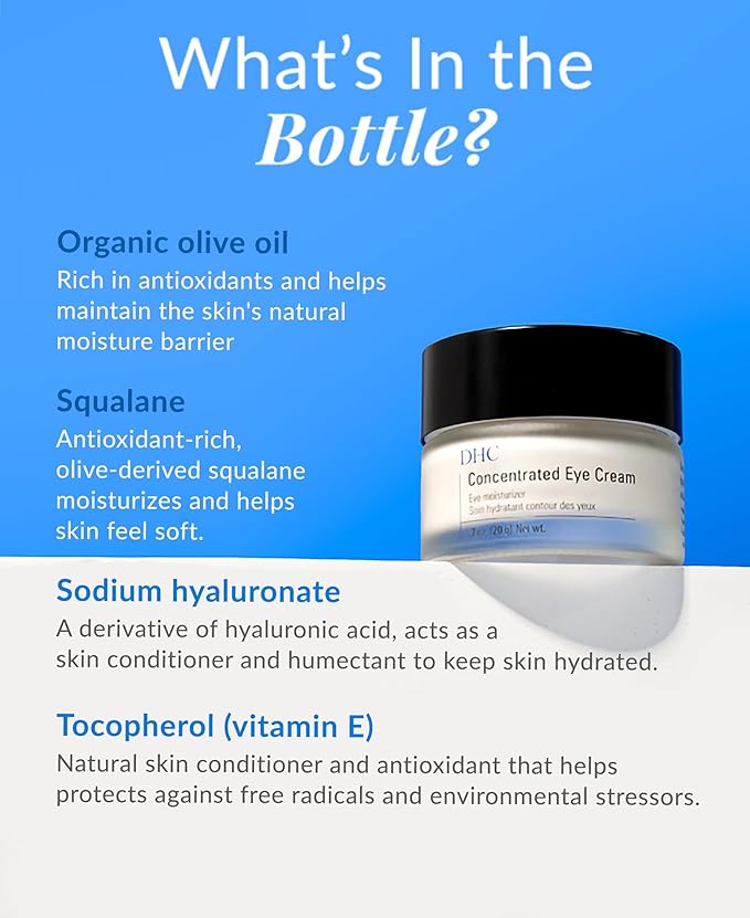 - DHC Concentrated Eye Cream is a deeply hydrating and soothing eye cream that targets fine lines, crow's feet, and dark circles.