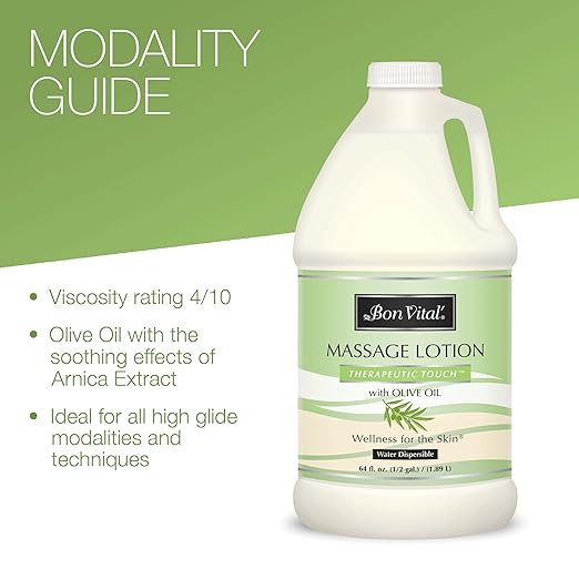 Bon Vital' Therapeutic Touch Massage Lotion with Olive Oil to Repair Dry Skin & Soothe Sore Muscles, Skin Therapy Lotion, Moisturizes Skin During Massages for Smooth Skin, 1/2 Gal, Label may Vary