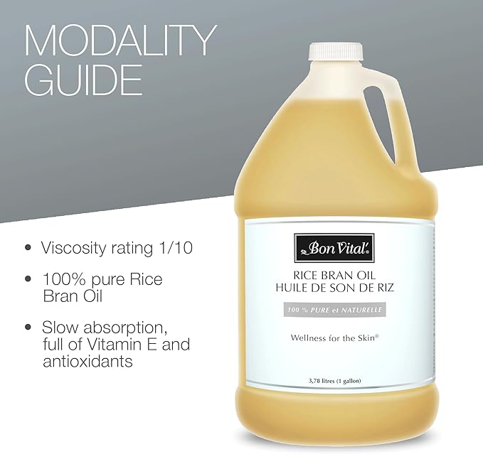 Bon Vital' Rice Bran Oil, 100% Pure and Cold Pressed Carrier Oils for Diffusers, Professional Massage Oil, Best Beauty Secret for Soft & Smooth Skin, Moisturizer, 1 Gallon Bottle