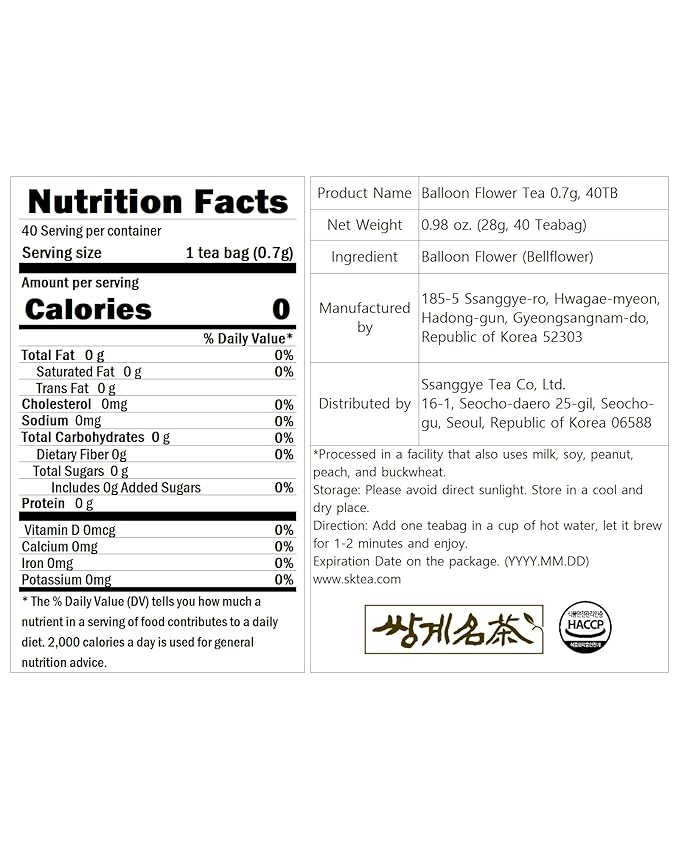 Ssanggye Bellflower Tea 0.7g x 40 Tea Bags, Premium Korean Herbal Tea Caffeine Free Dried Roasted Herb Refreshing 4 Seasons Sweet Daily Drink Tea