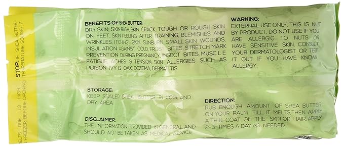 - Direction: Rub enough amount of Shea butter on your palm till it melts, then apply a thin coat on the skin or hair. Apply 2-3 times a day as needed.