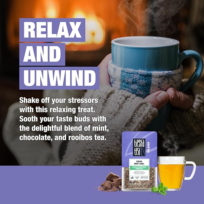 - QUALITY LOOSE LEAF TEA: Tiesta Tea’s Cocoa Mint Chill is crafted with loose leaf ingredients, offering an aromatic experience beyond standard tea bags. With rooibos, cocoa, and peppermint leaves, this peppermint chocolate tea delivers a rich, full-bodied flavor you can taste in every sip.