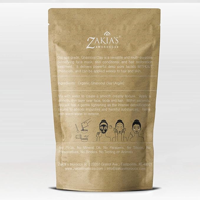 - ✅♡ CONVENIENT! Zakia's Ghassoul Ghassoul Clay Powder is packaged in an environmentally safe, sturdy resealable bag for long term storage
