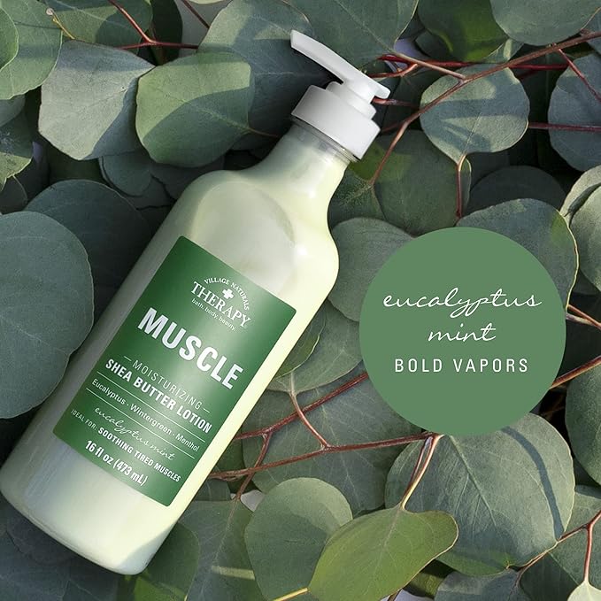 Village Naturals Therapy Muscle Shea Butter Lotion, Eucalyptus Mint Scent, 16 fl oz, Pack of 3