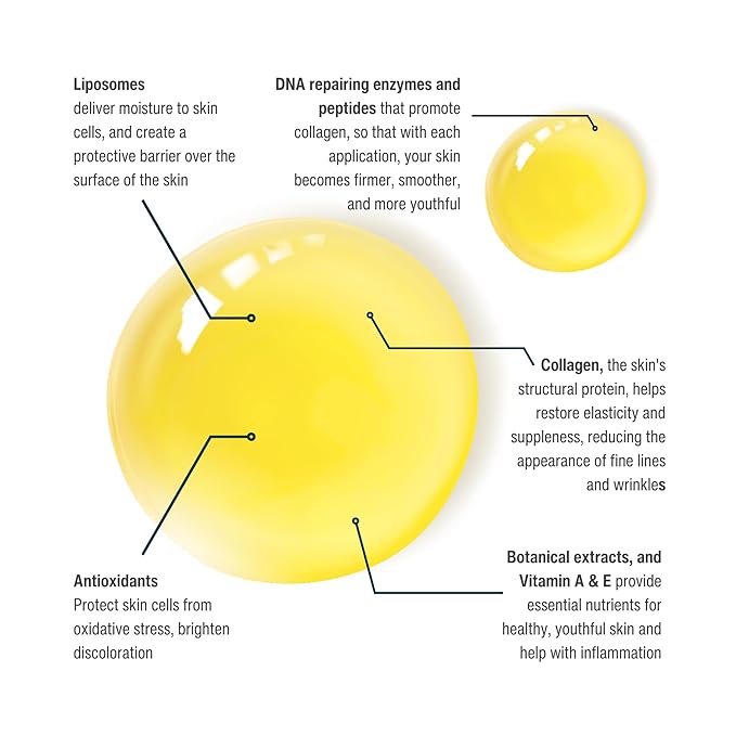 - PREMIUM INGREDIENTS: This non-greasy formula penetrates deeply with a potent blend of active ingredients, including DNA repairing enzymes and peptides to firm and smooth skin at a cellular level.