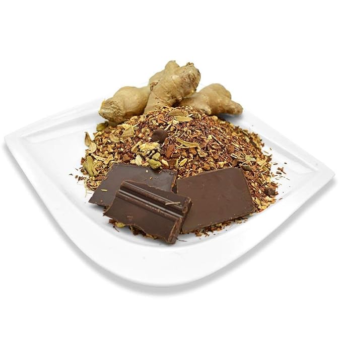 - INGREDIENTS - organic rooibos, organic ginger root, organic green cardamom, organic chocolate chips, natural chocolate flavor
