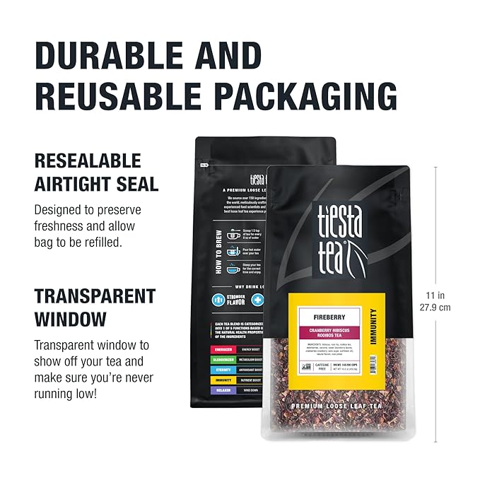 - RESEALABLE POUCH FOR LASTING FRESHNESS: Keep your tea fresh with a resealable pouch designed for flavor preservation. The 16 oz pouch offers up to 200 cups, making it a convenient and lasting addition to your tea collection.
