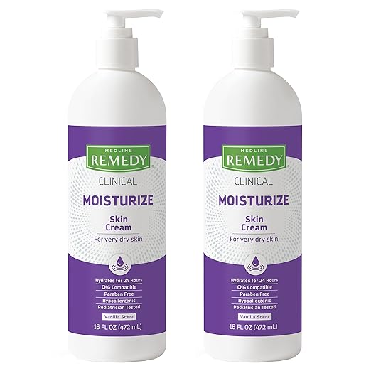 Medline Remedy Clinical Skin Cream, Vanilla Scent (16 fl oz), 2 Count, Moisturizing Face and Body Cream for All Ages, Paraben & Sulfate Free, Quick Absorbent Formula, Hypoallergenic Skin Moisturizer