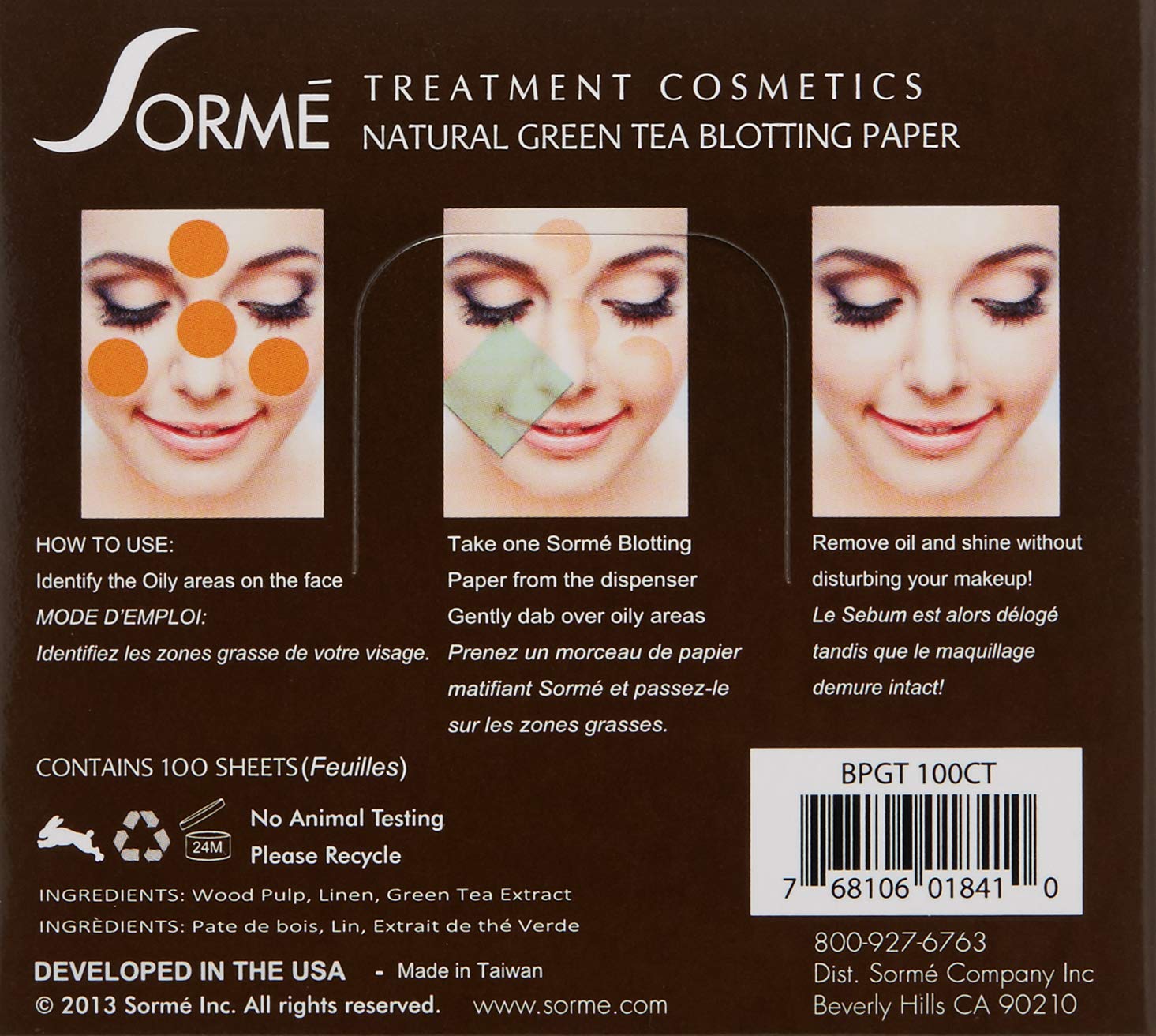 Sorme' Treatment Cosmetics Blotting Paper, Green Tea, 0.5 oz.