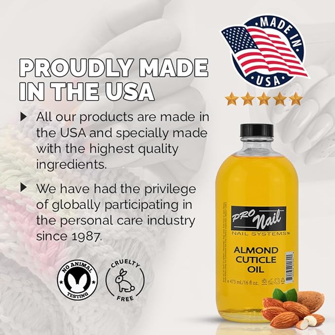 - Pronail Almond Cuticle Oil is made without: Our product is Sulfate-Free, Drying Alcohol-Free, and Cruelty-Free. We never test on animals.