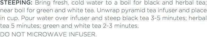- HOW TO STEEP - Unwrap the Pyramid Infuser, steep in hot water, and reveal the exquisite nature of the whole leaf teas. Allows the tea leaves to fully unfurl in the water, resulting in a most flavorful cup of tea. Do not microwave pyramid.