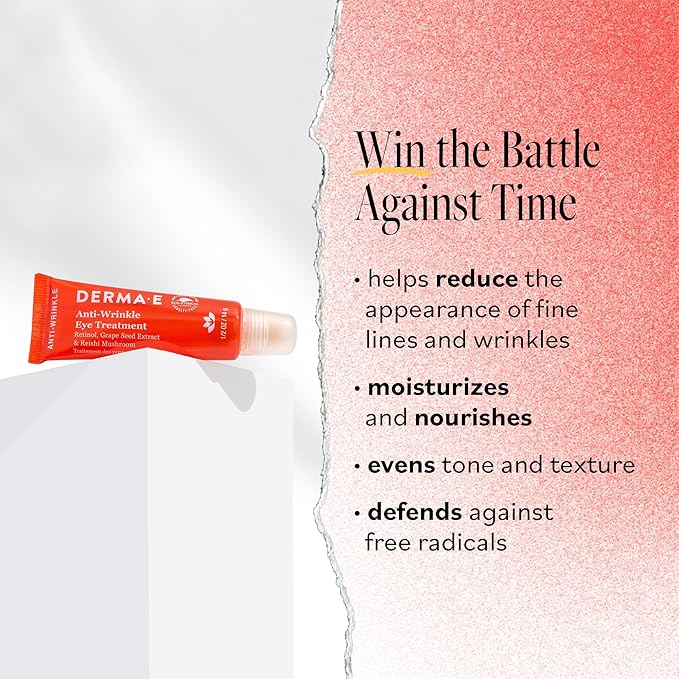 Derma E Anti-Wrinkle Eye Treatment – Anti-Aging Cream with Retinol, Grape Seed Extract and Reishi Mushroom – Hydrating Serum for Under Eye and Eyelids, 1/2 oz