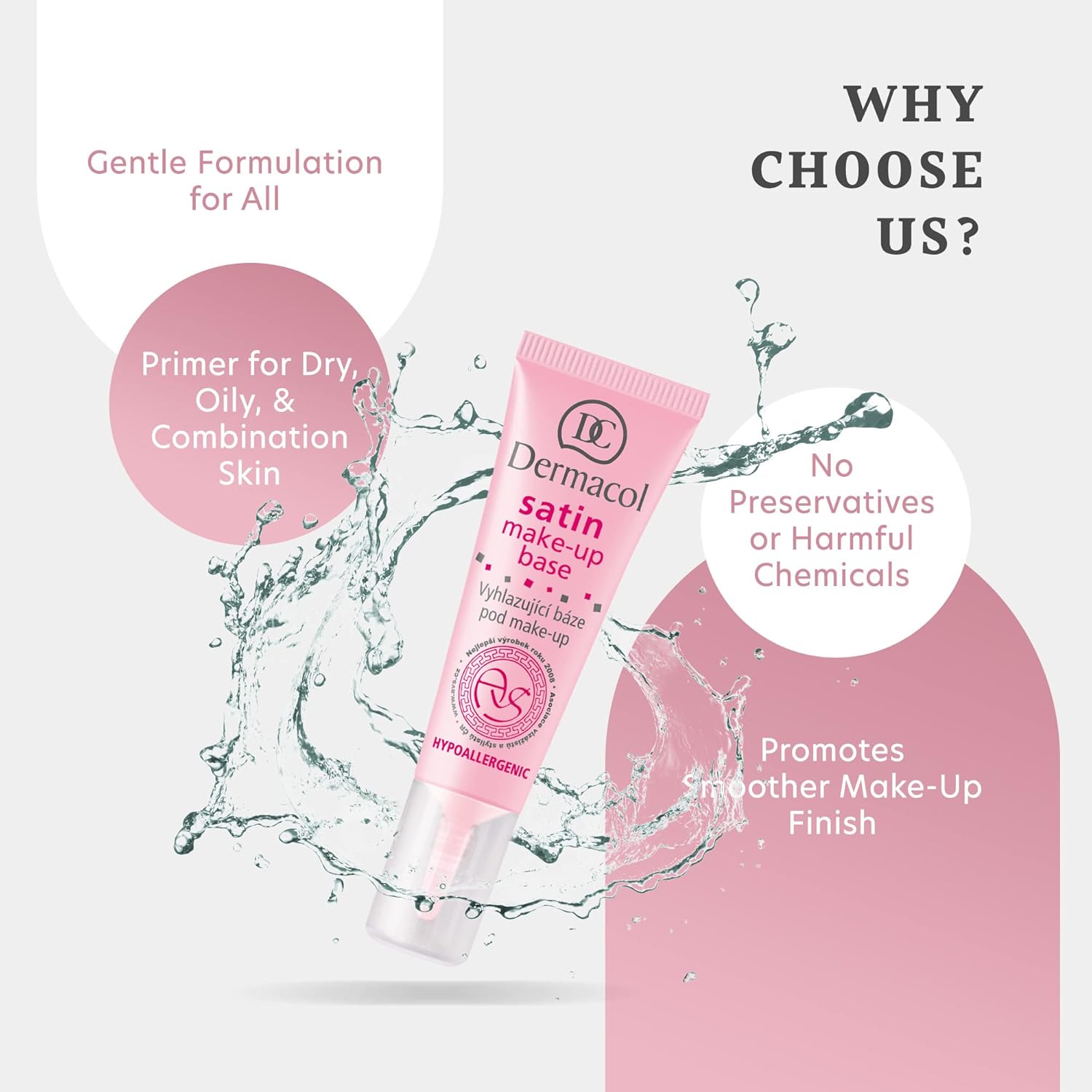 - Build Your Look On A Flawless Base - Want to know the secret behind beautiful makeup looks? A long-wearing, transparent base makeup! Use Dermacol’s face primer under foundation for a satin-smooth finish that makes the best canvas for your makeup.