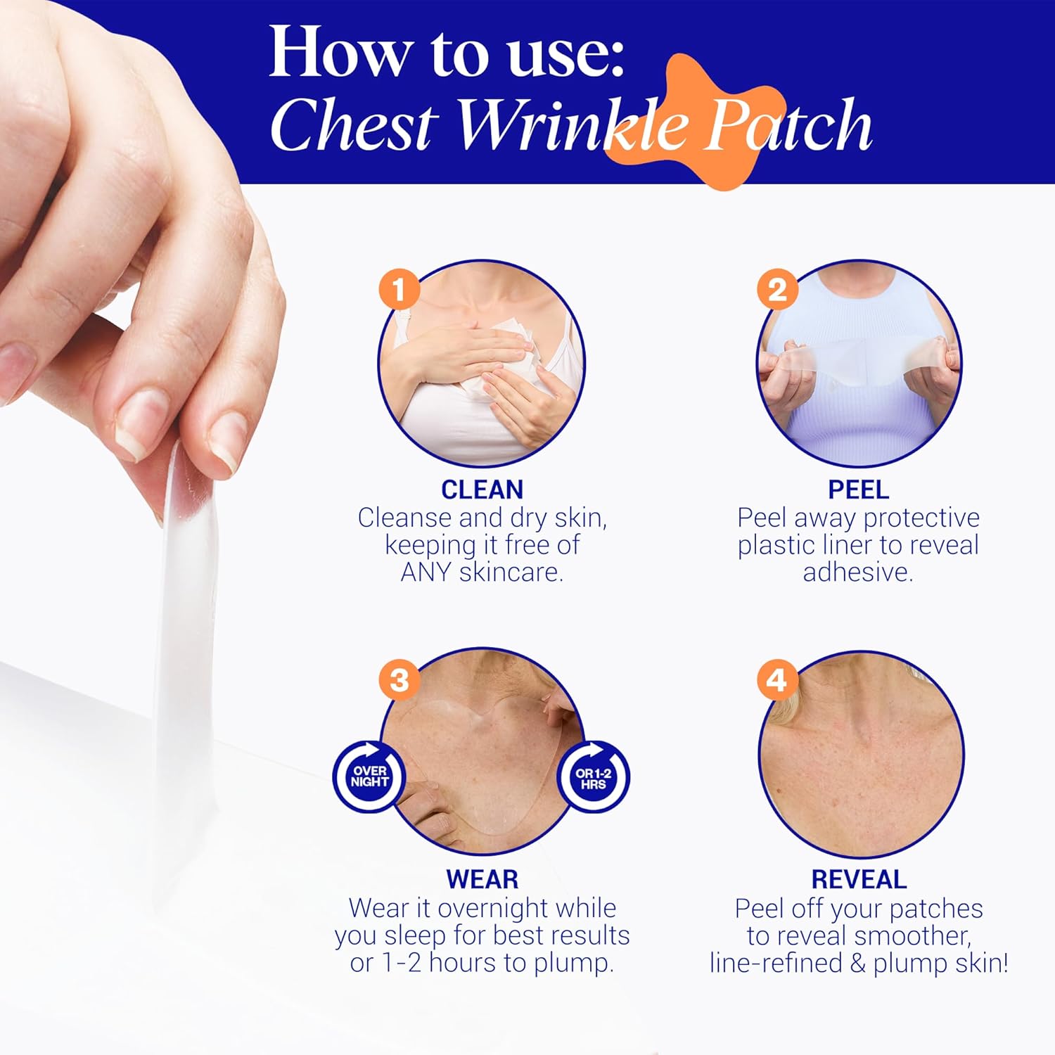 - AGING IN REVERSE: Ideal for overnight use when your skin clicks into repair mode or for 1-2 hours day for a quick boost, our skin-safe, reusable Chest Wrinkle Patches create an occlusive layer, pulling the skin taut to prevent creasing. Simultaneously boosting hydration, collagen production, and overall skin resilience.