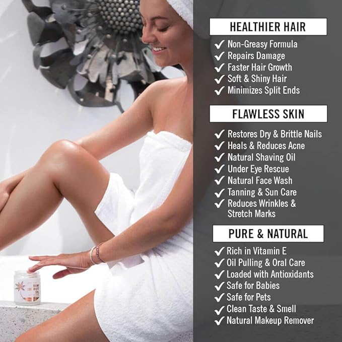 - HIGH QUALITY COCONUT OIL: Best raw coconut oil for hair unrefined, Best clean coconut oil for skin, Pure coconut oil for tanning