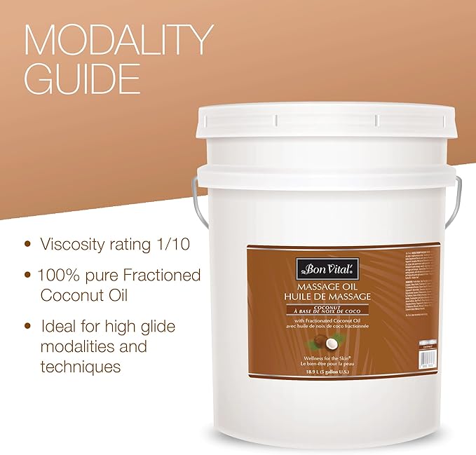 Bon Vital' Coconut Massage Oil with 100% Pure Fractionated Coconut Oil to Repair Dry Skin, Used by Massage Therapists and At-Home Use for Therapeutic Massages and Relaxation, 5 Gal, Label may Vary