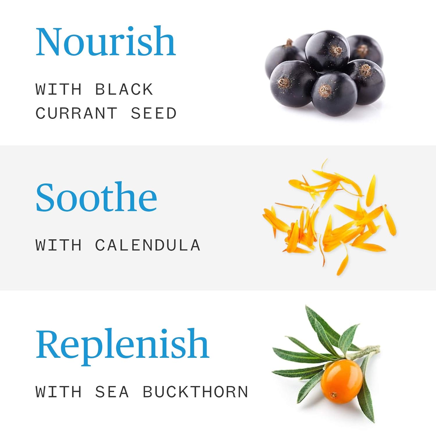 - CLEAN SKINCARE - Plant-based formula including hydrating sea buckthorn, soothing calendula, and moisture-retaining sunflower. Rich in antioxidants, vitamins A, C and E, carotenoids, phytosterols, essential fatty acids including omega 3, 6, 7 and 9 oils.