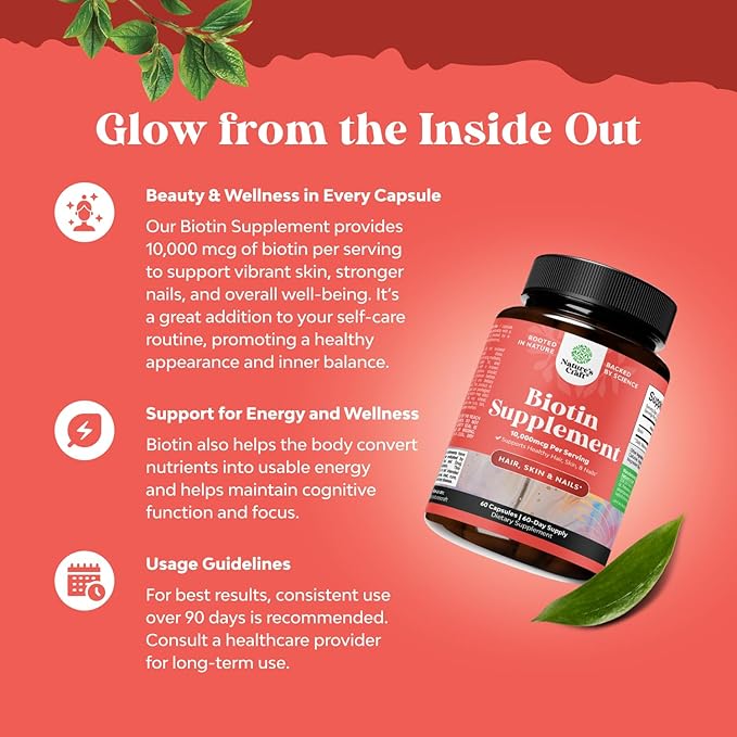 - Pure Biotin Supplement - Our biotin pills are loaded with anti aging vitamins to keep your skin glowing and acts as a natural hair growth nutrient to boost hair volume nail growth and healthy skin