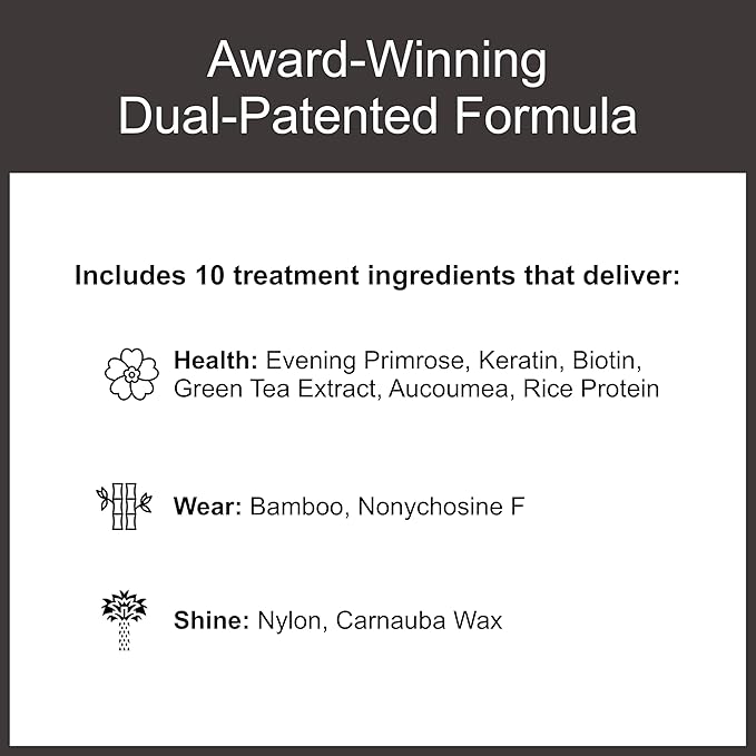 - Treatment Enriched Formula: Our dual-patented nail polish formula is designed for health, wear, and shine. It boasts 10 exclusive ingredients, including Evening Primrose, Keratin, Biotin, and Green Tea Extract. This formula ensures optimal well-being for your nails without the need for lamps or tools.