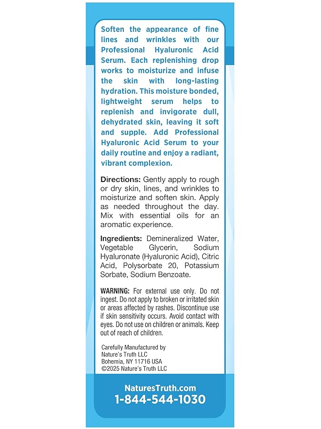 Nature's Truth Hyaluronic Acid Serum for Skin | 1 fl oz | Topical Liquid