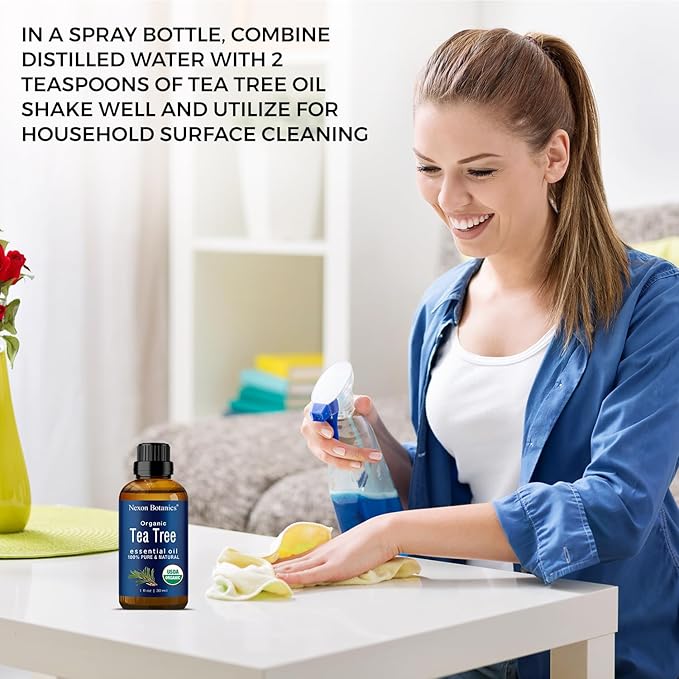 - Pure, Organic Essential Oil: USDA Certified Organic Tea Tree Essential Oil (Melaleuca alternifolia), steam-distilled and bottled in the USA. No additives, fillers, or synthetic fragrances.