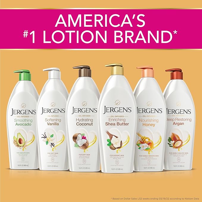 Jergens Nourishing Honey Dry Skin Moisturizer, with Illuminating Hydralucence Blend, Skin Nourishing Formula, Dermatologist Tested, 16.8 Oz, Pack of 4