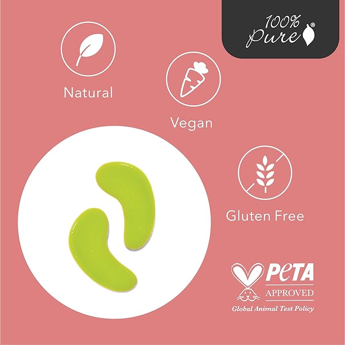 100% PURE Bright Eyes Masks Under Eye Skincare Wrinkle Smoothing Replenishment Diminish Dark Circles, Puffiness - Hydrating & Moisturizing Patches For Tired Eyes & Morning Bags - Vegan - 1 Pack