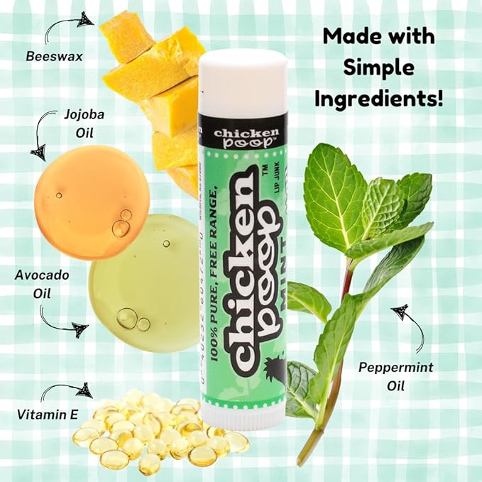 Chicken Poop Lip Balm Simone Chickenbone 100% Natural Moisturizer, Refreshing for Dry Chapped Lips, 0.15 oz, (Mint), 1 Pack