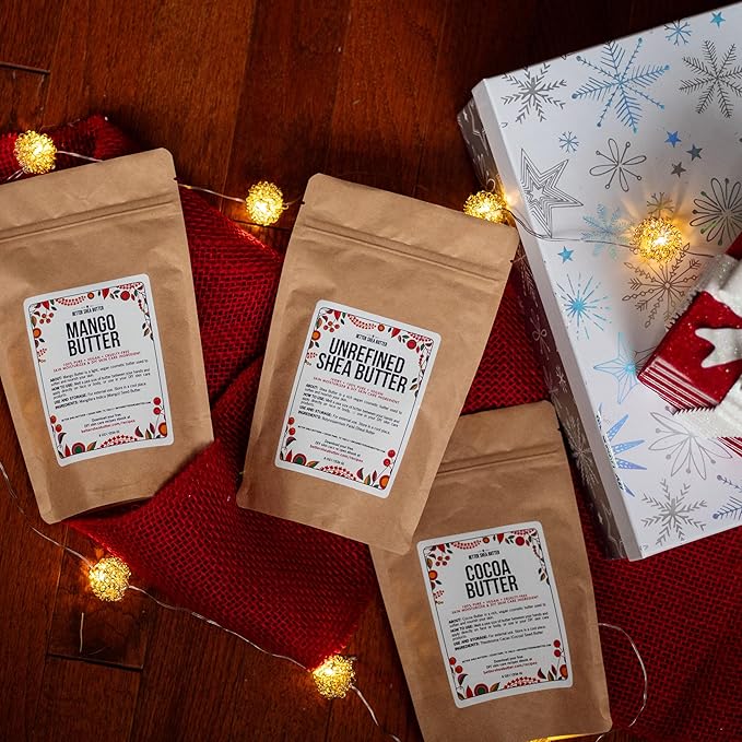 Better Shea Butter Set of Raw Shea Butter, Raw Mango Butter, Unrefined Cocoa Butter For Soap Making and DIY Body Butters, Lip Balms, Body Lotions - Each Jar is 8 oz Making 24 oz Total (3-Bar Set)