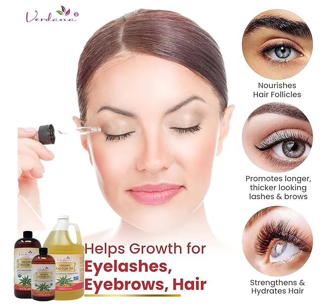 Verdana Organic Castor Oil – 16 Fl Oz Size – Cold Pressed, Unrefined, Hexane-Free – USDA Organic – Natural Moisturizer for Hair Growth, Eyelashes, Skin, Scalp & Castor Oil Packs