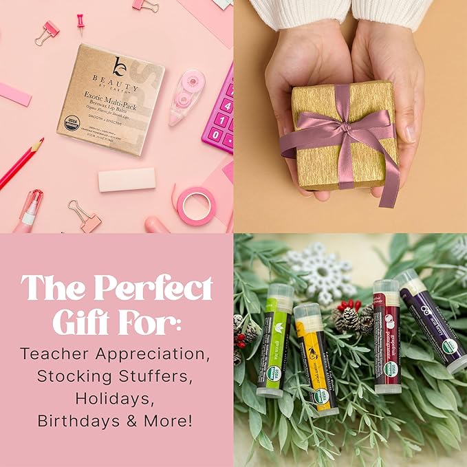 - PERFECT GIFT FOR ANY OCCASION: This organic lip balm set makes 𝐢𝐝𝐞𝐚𝐥 𝐬𝐭𝐨𝐜𝐤𝐢𝐧𝐠 𝐬𝐭𝐮𝐟𝐟𝐞𝐫𝐬 for wife, small stocking stuffers for women, or stocking stuffers for teen girls. Beautifully packaged and suitable for all, it’s a thoughtful and practical cute stocking stuffer for women and all natural gifts for women.