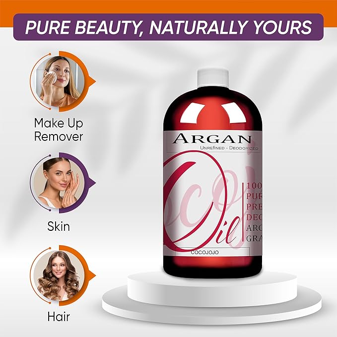 Dr Joe Lab Argan Nut Oil Deodorized 16 oz Pure Natural Moroccan Unrefined Unscented Cold Pressed Virgin - for Hair Skin Body Nail Beard - Marrakesh Oil - Packaging May Vary