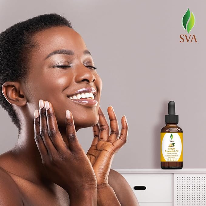 - PREMIUM QUALITY GINGER ESSENTIAL OIL: SVA Ginger essential oil is obtained by steam distillation of Zingiber Officinale originated in India. Our Ginger oil is free of preservatives and comes with a dropper for easy application. It is not tested on Animals. We care for you!