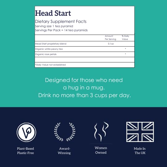 HOTTEA MAMA Head Start an Organic White Tea and Rose herbal blend | A Slow Release Caffeine Blend a l-theanine tea | Supporting Alertness & Brain fog | 14 Pyramid Sachets per box