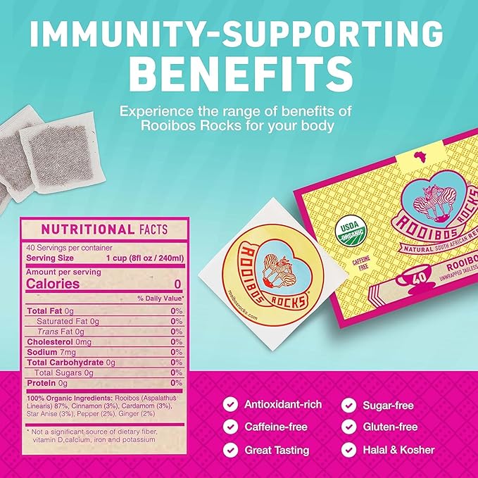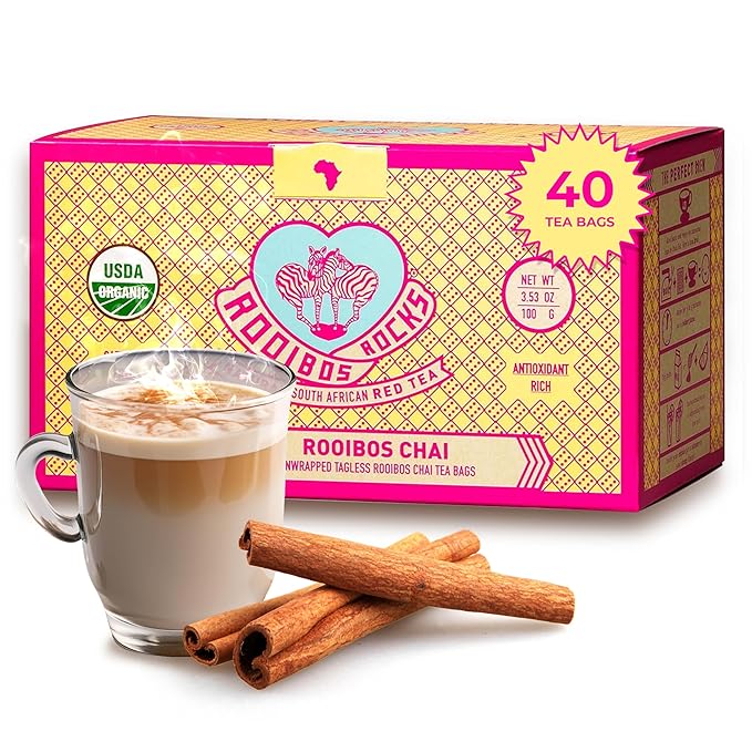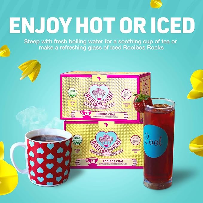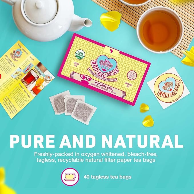 - 💜 SWEET AND HEALTHY - Savor the sweetness and spice of caffeine-free Rooibos Rocks Rooibos Organic Chai Tea Bags, a beverage that's also sugar-free and calorie-free. It's the perfect tea for those mindful of their sugar and caffeine intake.