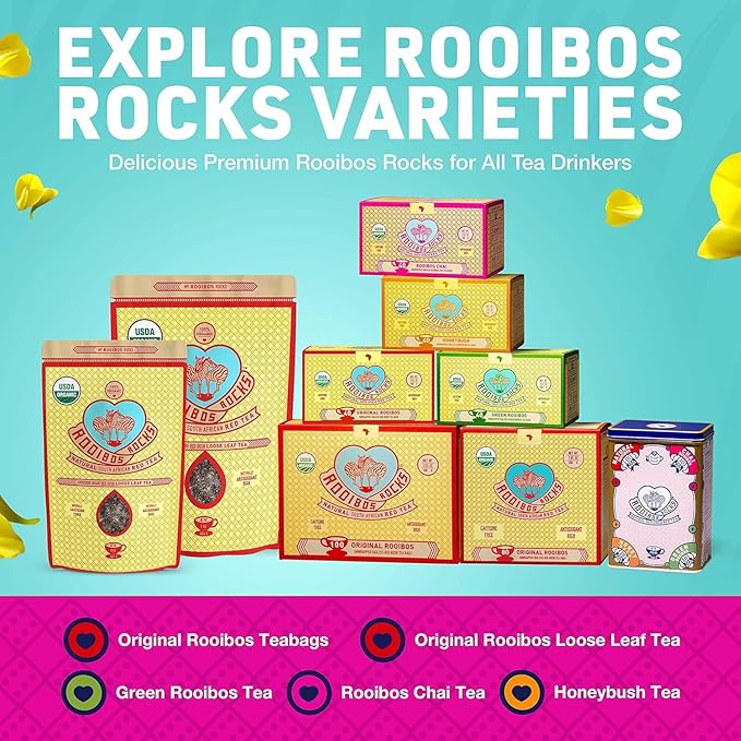 - 💜 SUSTAINABLY AND ETHICALLY GROWN - Our red tea from South Africa is grown without the use of synthetic pesticides, which is verified by our USDA organic certification. Further, we support the farmers who grow our Rooibos Rocks USDA organic tea.