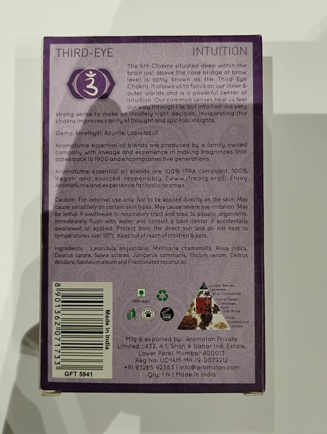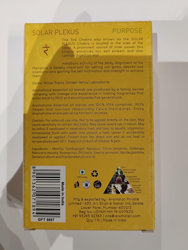 - This assorted set contains 7 Boxes of Aromafume 7 Chakra Therapeutic Grade Essential Oil Blends (Sahasrara, Ajna, Vishuddha, Anahata, Manipura, Swadishtana, Muladhara) with 1 piece of 6ml each, to balance the key Chakras of your body with the aromas of its enriched essential oils