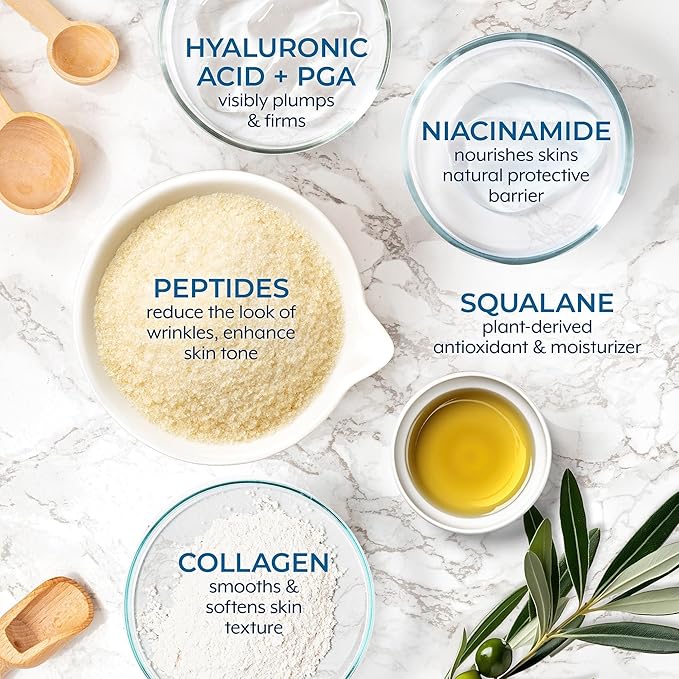 - ALL-IN-ONE: If there was just one anti-aging product to add to your nighttime beauty routine, we think this is it! The combination of collagen enhancing Peptides, Hyaluronic Acid, and Niacinamide will leave your skin looking bright, plump and smooth.