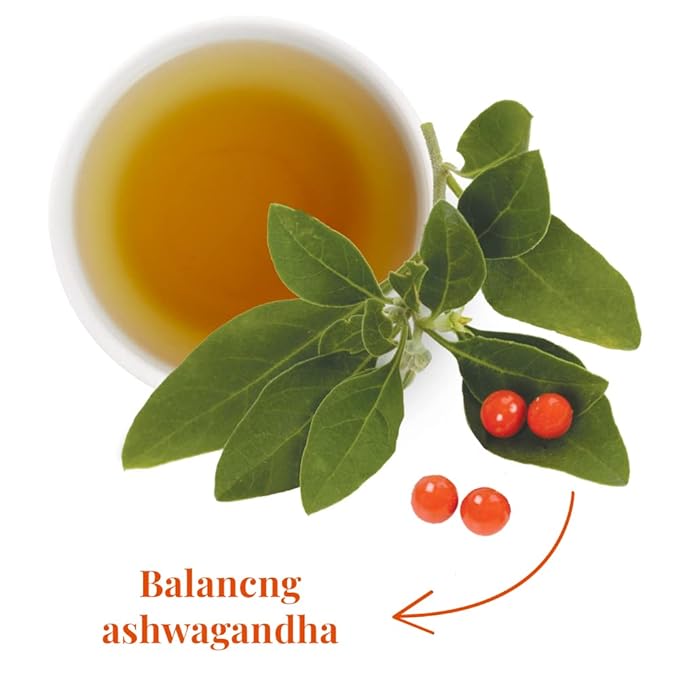 - ASHWAGANDHA: A healer with “the power of stallions,”Ashwagandha root has been used for thousands of years. In the Ayurvedic traditional medicine practice of India, this root is used to create a foundation of wellness and stability in the mind and body. Inhale the sweet, light herbal aromas and focus your thoughts with calming lemon balm, sweet licorice and passionflower.