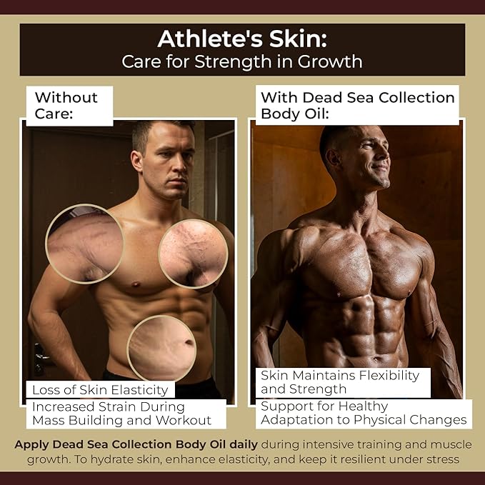 - For Athletes & Teenagers: The body oil is perfect for athletes and teenagers whose skin may stretch due to rapid growth or intense physical activity. It helps maintain skin elasticity and prevents overstretching during periods of rapid physical change. The product supports the skin after exercise, keeping it firm and healthy, which is particularly important during periods of body transformation.