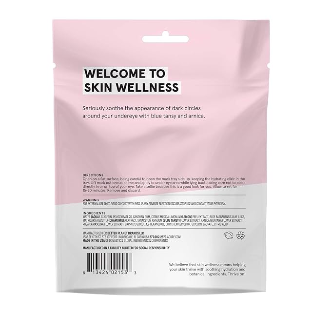 Acure Seriously Soothing Under Eye Hydrogels, 100% Vegan, For Dry to Sensitive Skin, Blue Tansy & Arnica - Soothes & Minimizes Dark Circles, Two Single Use, 0.24 Fl Oz
