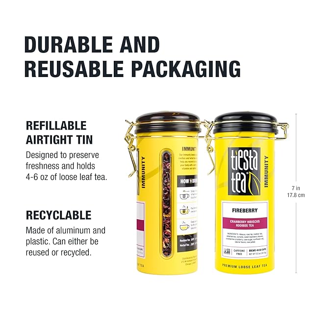 Tiesta Tea - Fireberry | Loose Leaf | Cranberry Hibiscus Rooibos Tea | Premium Non-Caffeinated Rooibos Blend | Make Hot or Iced | Brews Up to 250 Cups | 16oz Bulk Pouch & 5oz Refillable Tin Combo