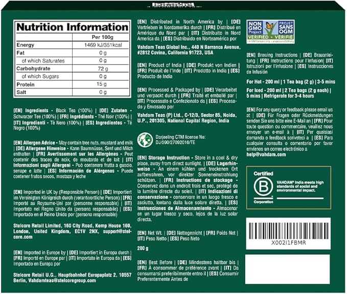 VAHDAM, Darjeeling Black Tea Bags (100 Count) High Caffeine, Non GMO, Gluten Free | Smooth & Sweet Tea With Distinguished Fruity Notes | Full Bodied