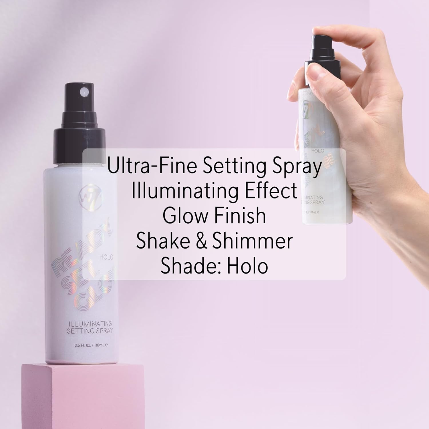 W7 Ready Set Glow Makeup Setting Spray - Shimmer Finish - Long-Lasting, Ultra-Fine Formula (Holo)